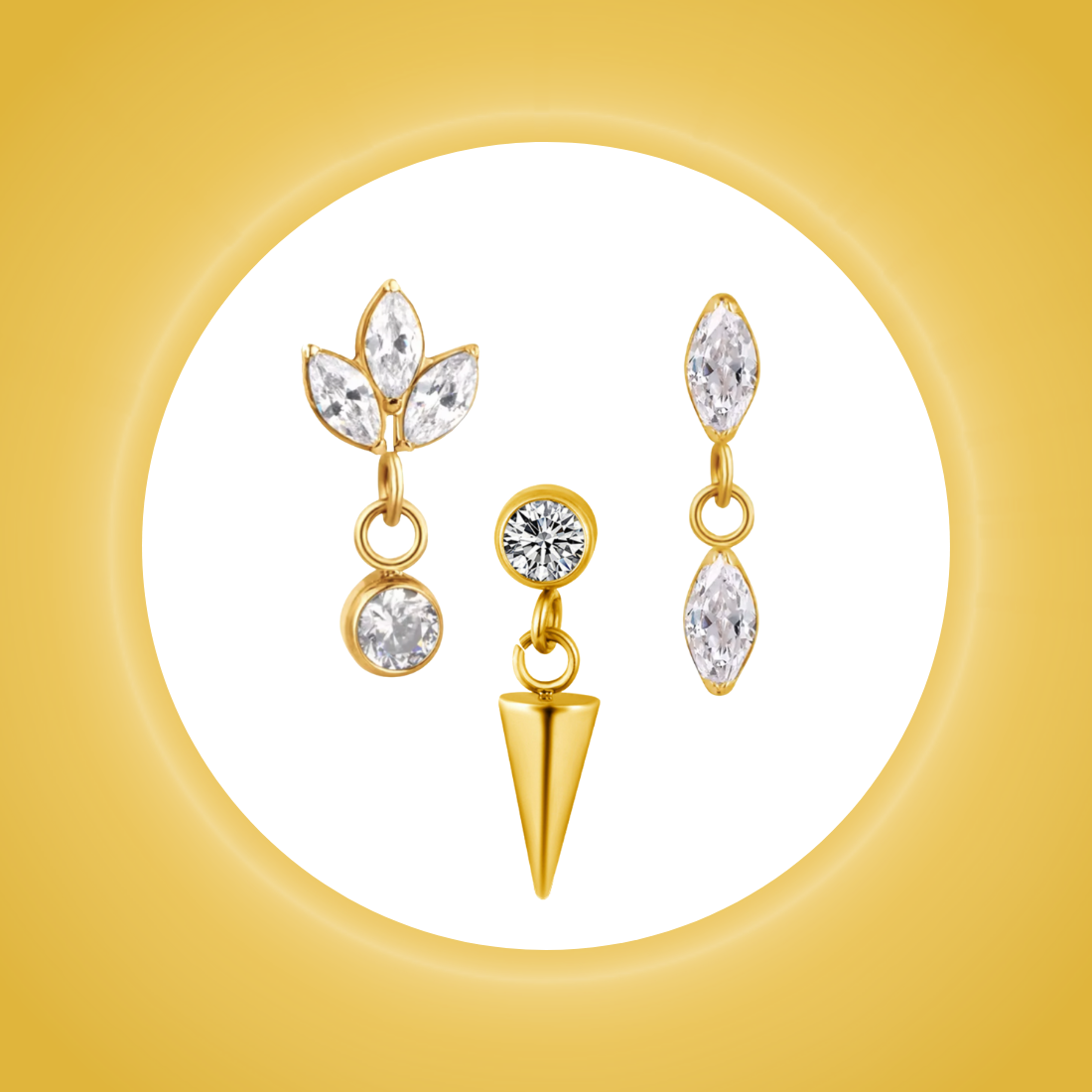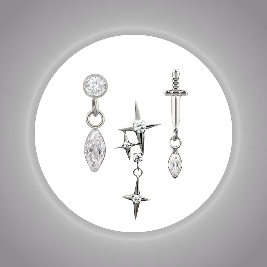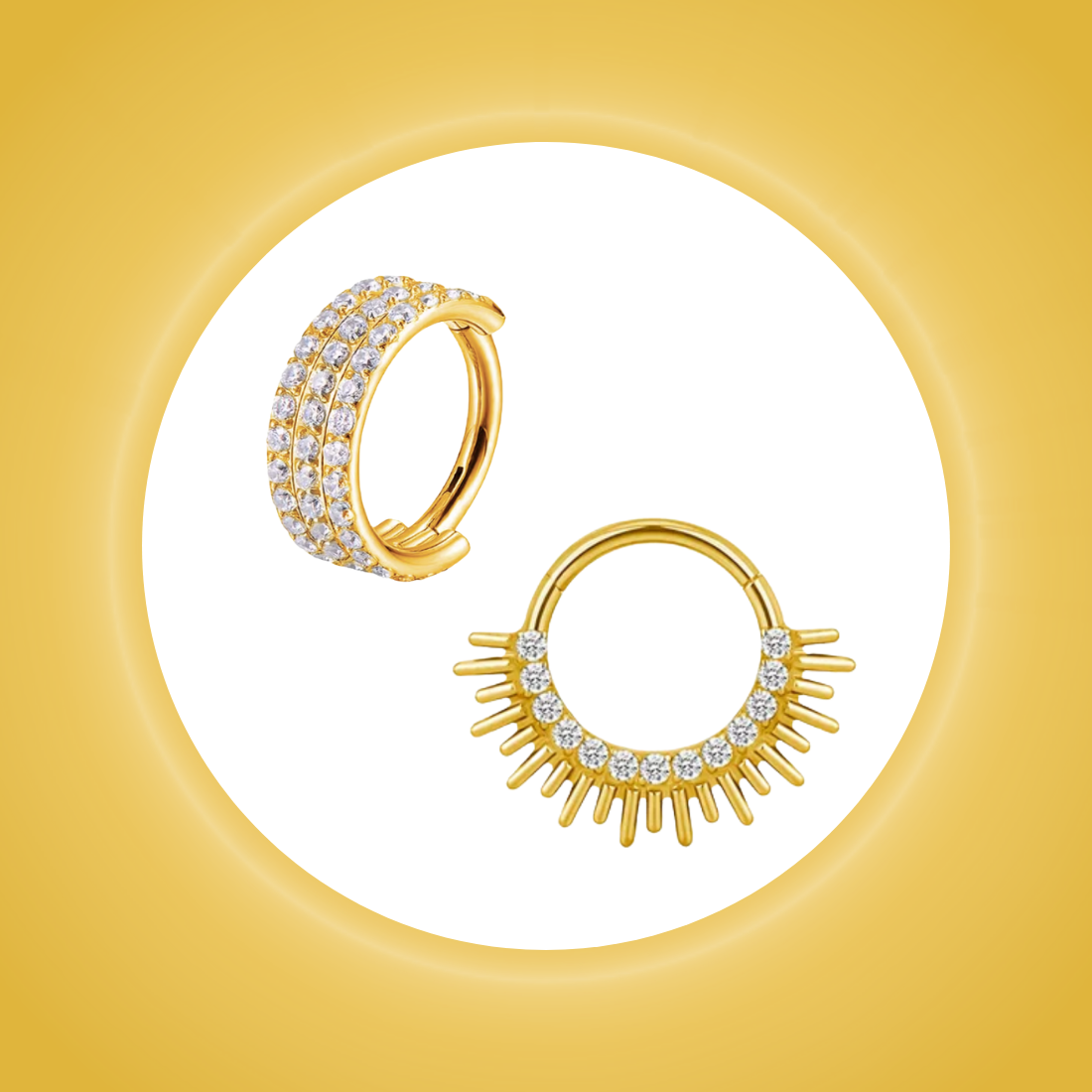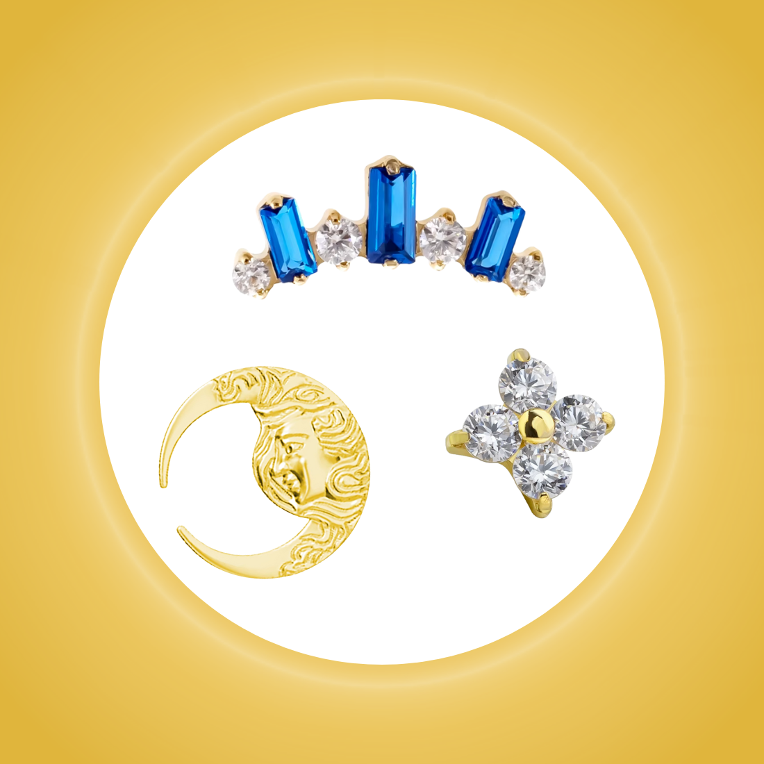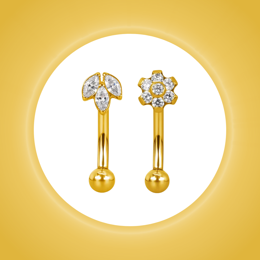 1.2mm thick, internally threaded titanium eyebrow and rook jewelry.