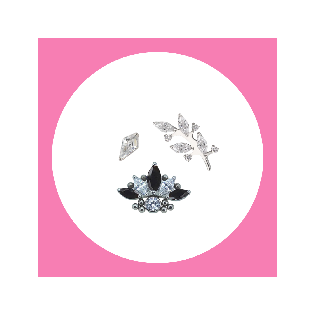 Titaniniai auskarų topai su vidiniu sriegiu, 1,2 mm storio strypeliams (su 0,9 mm...