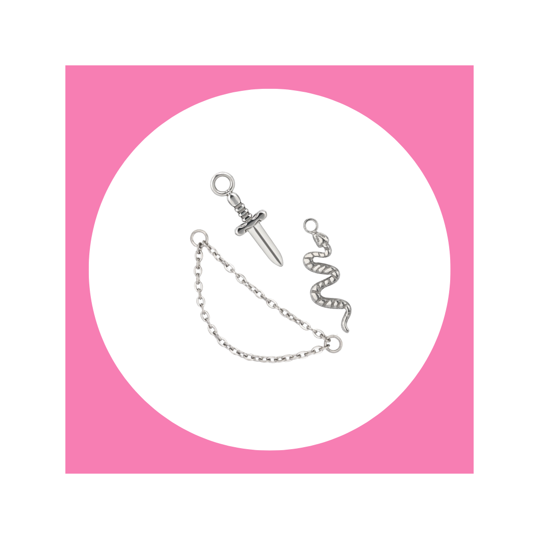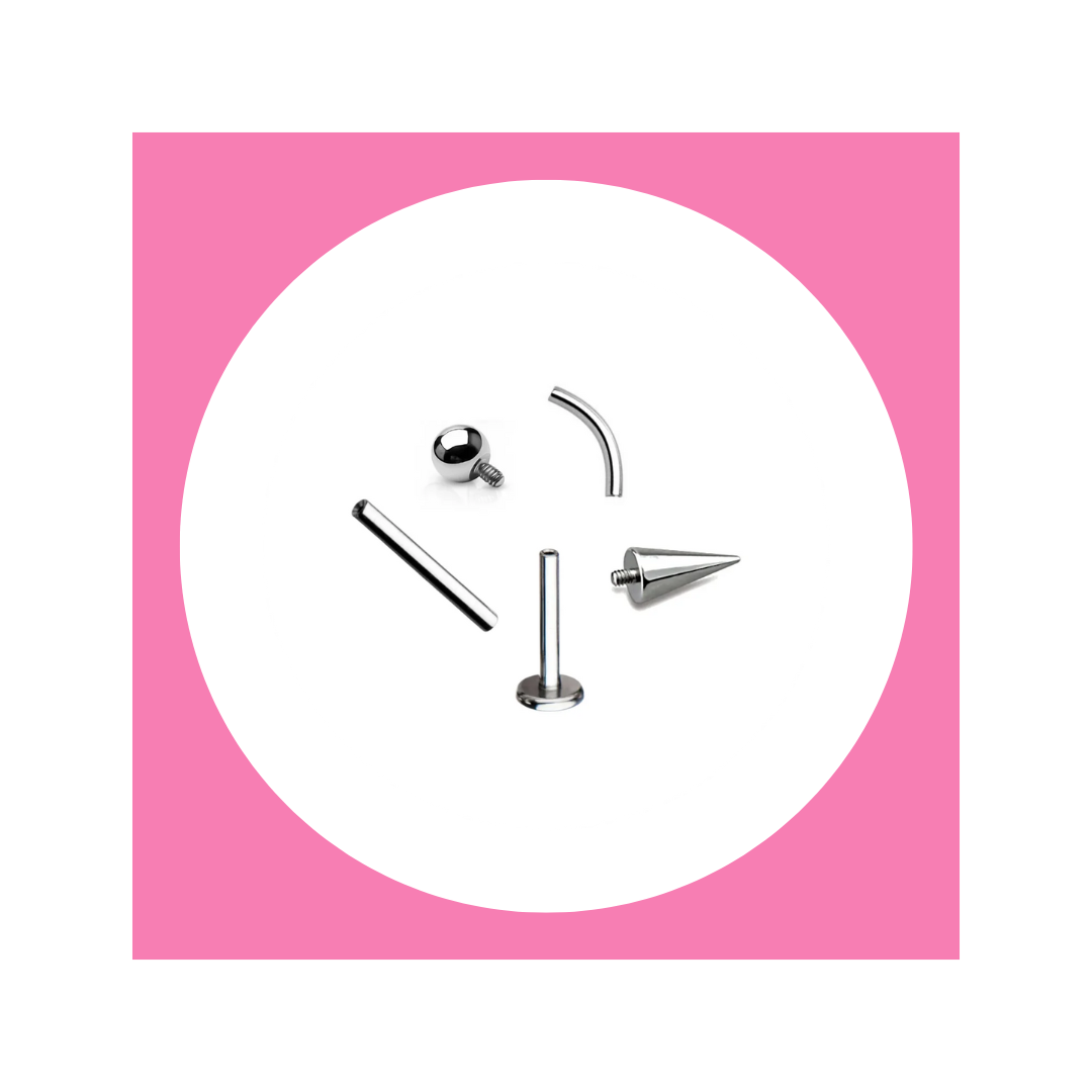 Standartiniai titaniniai papuošalai su vidiniu sriegiu, daugumoje salonų įtraukiami į kainą veriantis auskarą. 1.2mm strypeliai turi 0.9mm...
