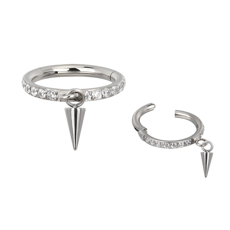 Žiedelis su cirkoniais ir kabančiu spygliu