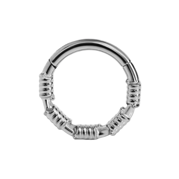 This hinged segment ring is best for daith and septum piercings, because the design is on the front of the ring.
