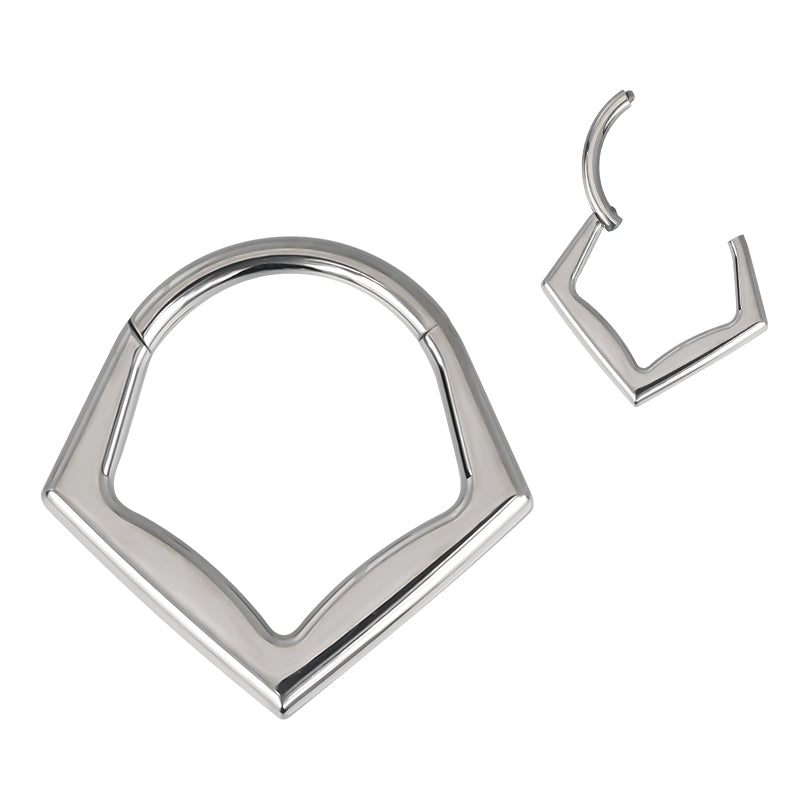 This hinged segment ring is best for daith and septum piercings, because the design is on the front of the ring.