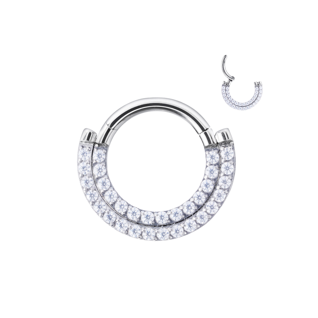 This hinged segment ring is best for daith and septum piercings, because the design is on the front of the ring.