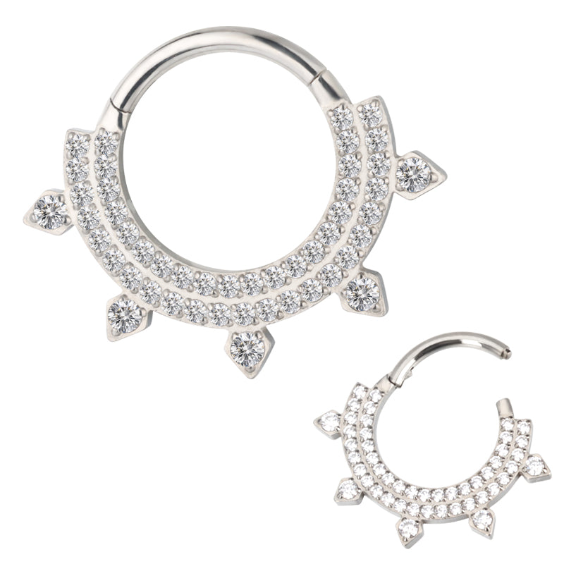 This hinged segment ring is best for daith and septum piercings, because the design is on the front of the ring.