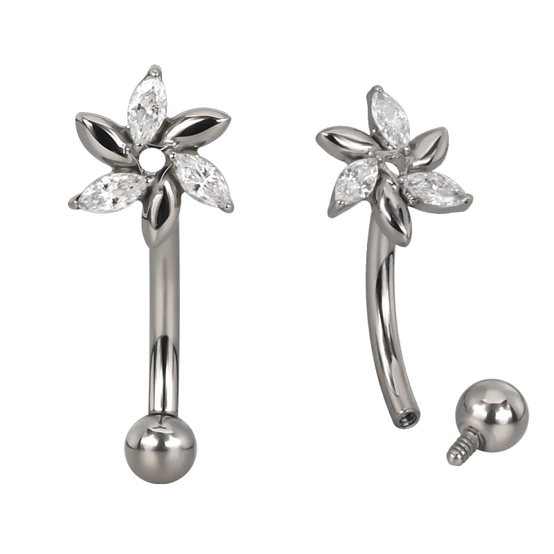 Eyebrow/rook barbell with a marquise flower