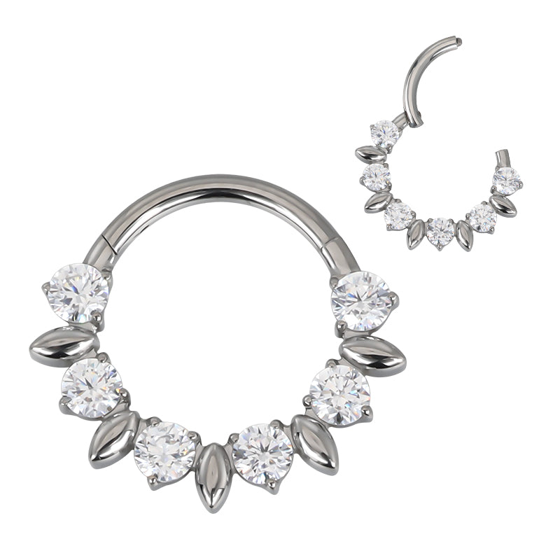 This hinged segment ring is best for daith and septum piercings, because the design is on the front of the ring.