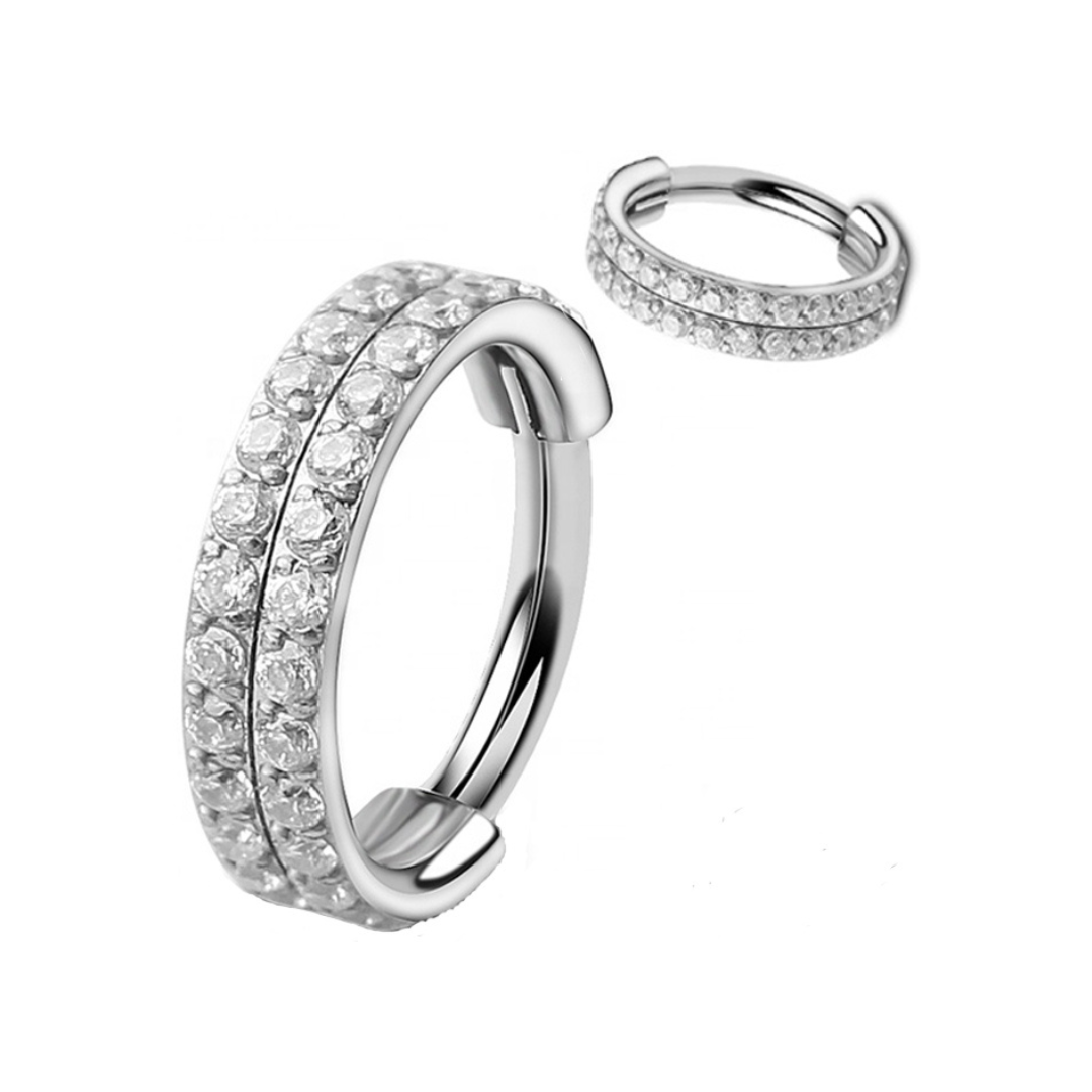 This hinged segment ring is best for nostril, lobe, helix, conch, labret piercings, because the design is on the side of the ring.