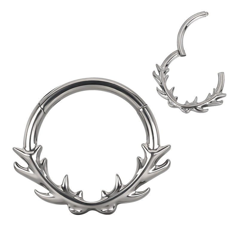 This hinged segment ring is best for daith and septum piercings, because the design is on the front of the ring.
