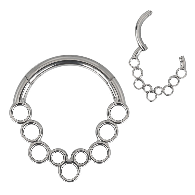 This hinged segment ring is best for daith and septum piercings, because the design is on the front of the ring.