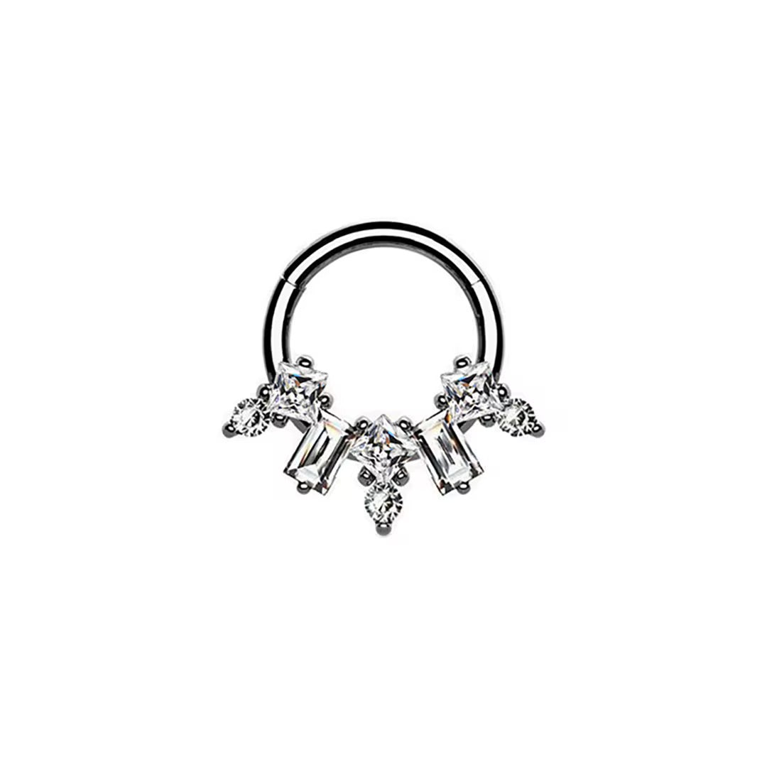 This hinged segment ring is best for daith and septum piercings, because the design is on the front of the ring.