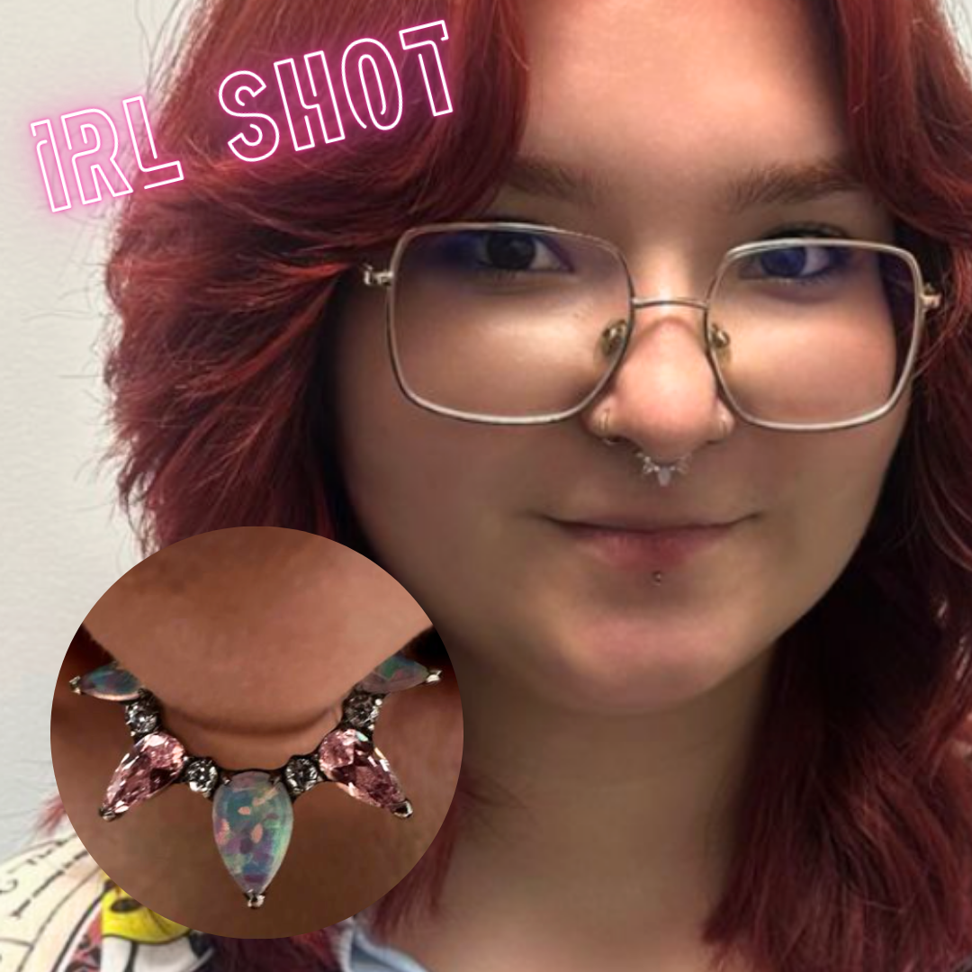 This hinged segment ring is best for daith and septum piercings, because the design is on the front of the ring.