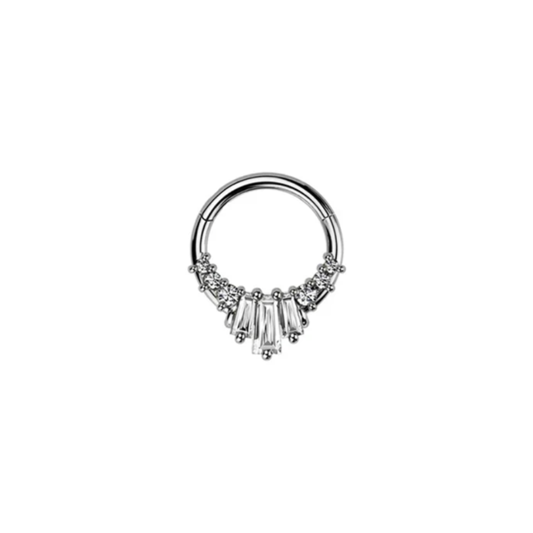 This hinged segment ring is best for daith and septum piercings, because the design is on the front of the ring.