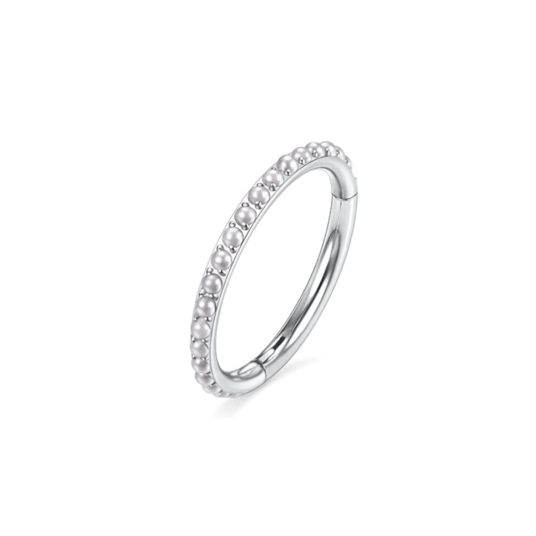 This hinged segment ring is best for nostril, lobe, helix, conch, labret piercings, because the design is on the side of the ring.